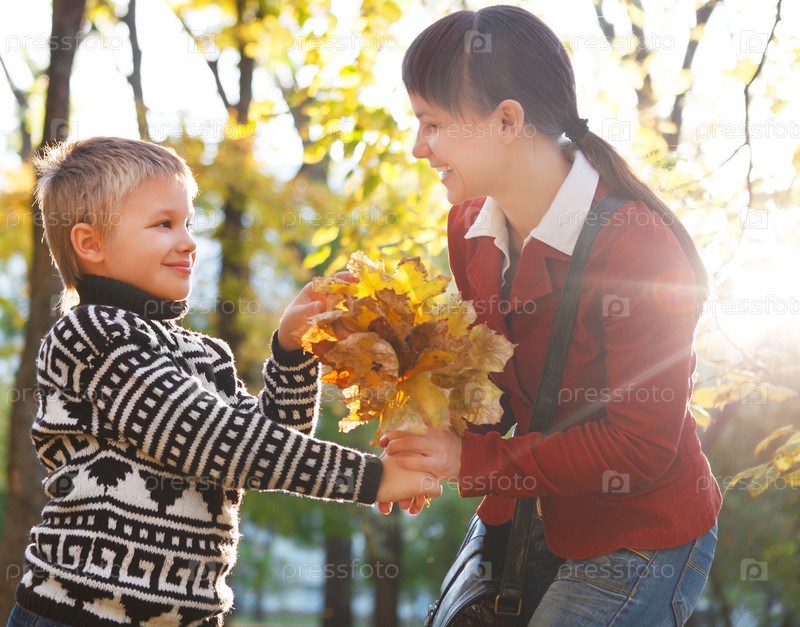Мать и сын на прогулке в парке