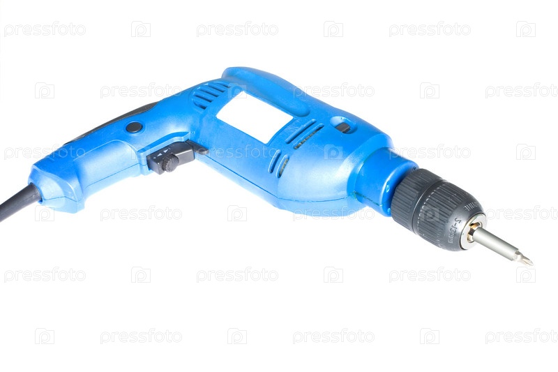 Электродрель на белом фоне