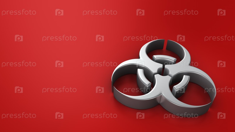 Символ биологической опасности на красном фоне