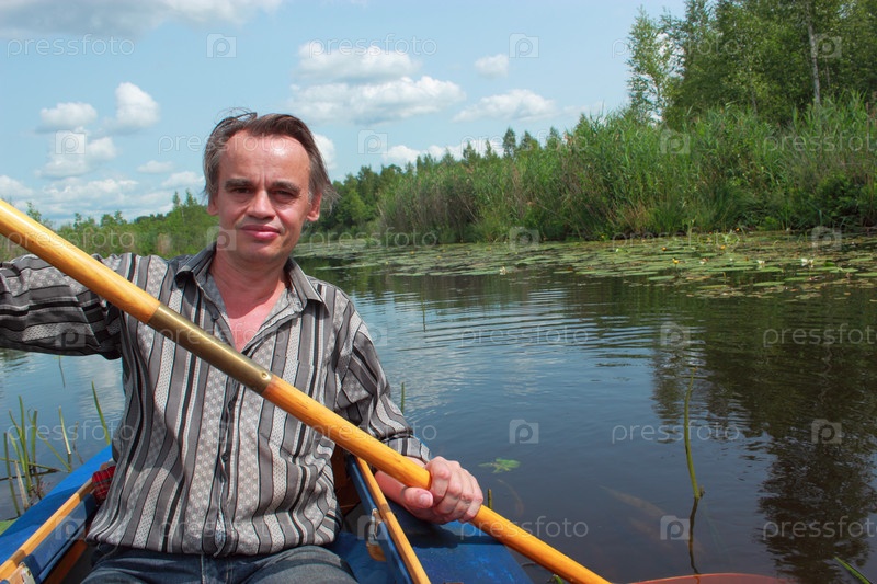 Мужчина плывет на байдарке