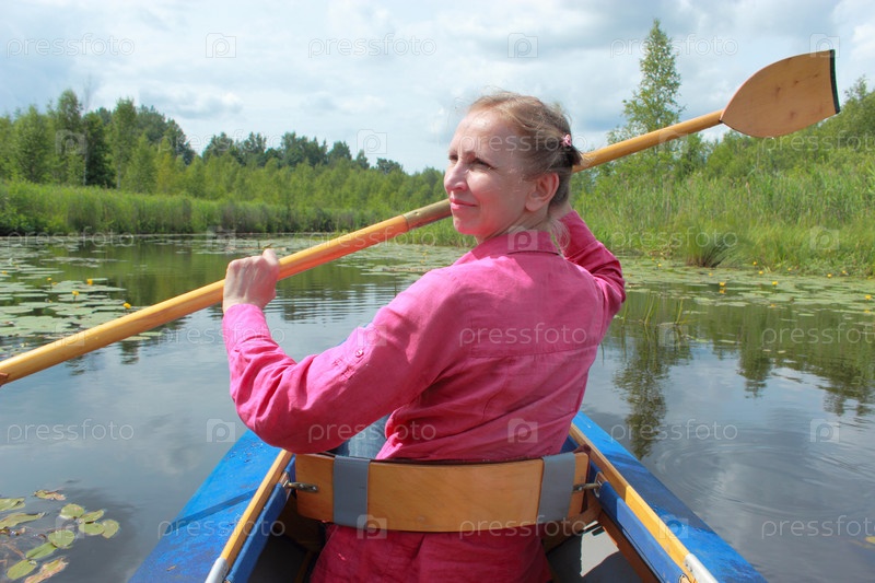 Женщина плывет на байдарке