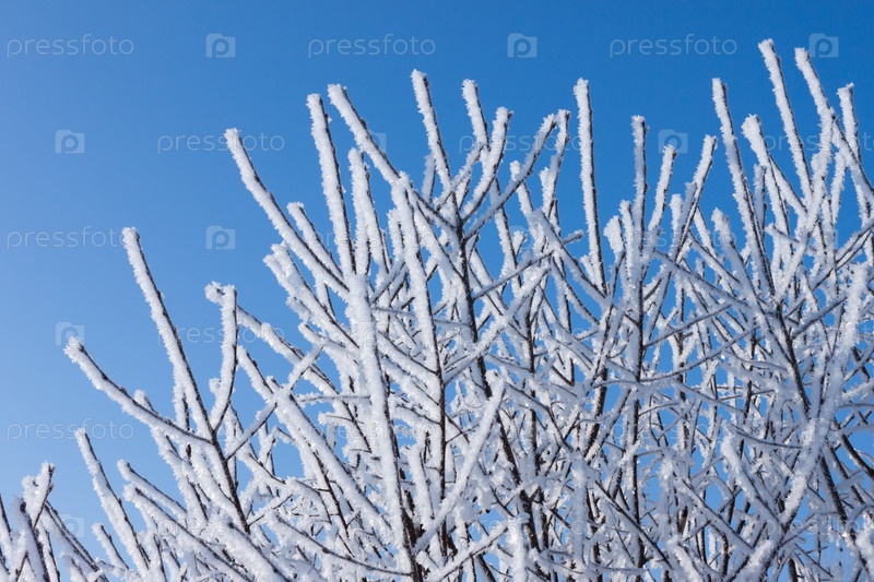 Ветви дерева в снегу крупным планом