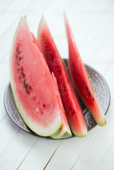 Ломтики спелого арбуза на тарелке