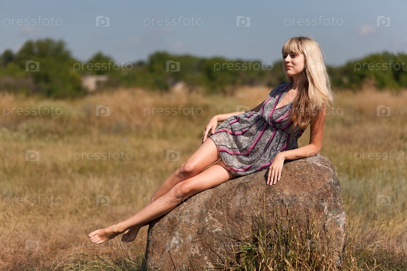 Девушка, лежащая на камне