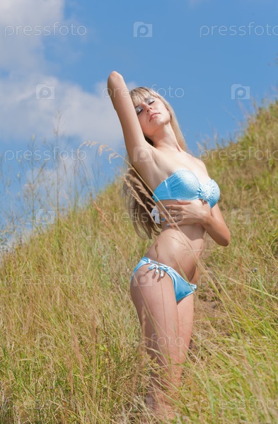 Девушка в бикини на холме