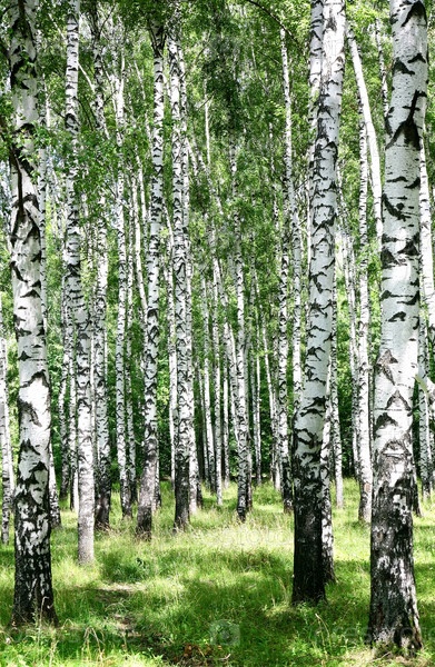 Тропа в солнечной березовой роще в июле