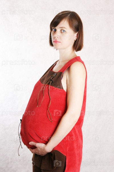 Беременная женщина в красном комбинезоне