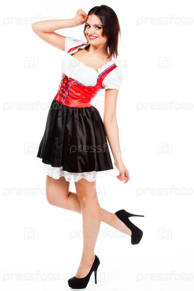 Молодая и красивая женщина в традиционном баварском платье