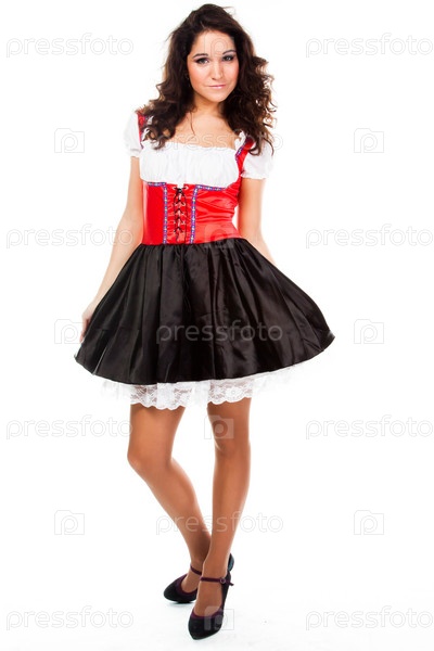 Молодая и красивая женщина в традиционном баварском платье