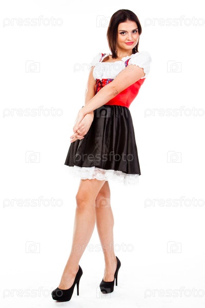 Молодая и красивая женщина в традиционном баварском платье