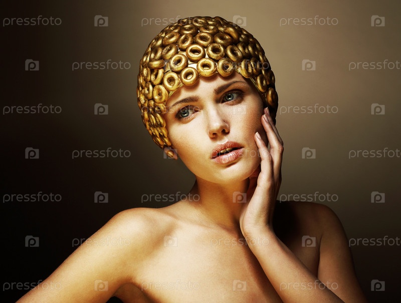Творчество. Сюрреалистический портрет женщины с золотым головным убором, похожим на шлем