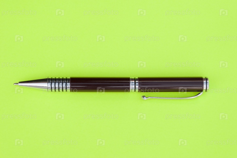 Шариковая ручка на зеленом листе бумаги