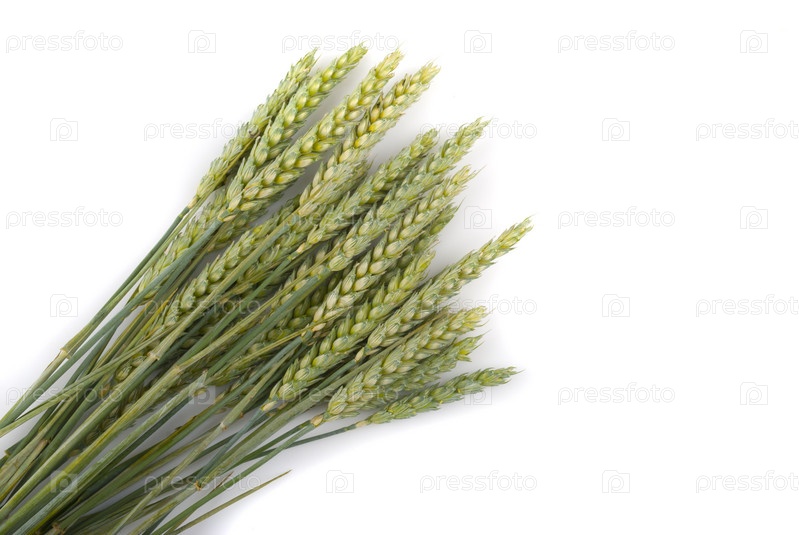 Зеленые колосья пшеницы на белом фоне