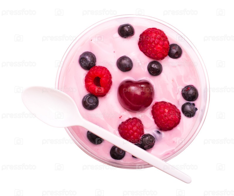 Йогурт с малиной и черникой