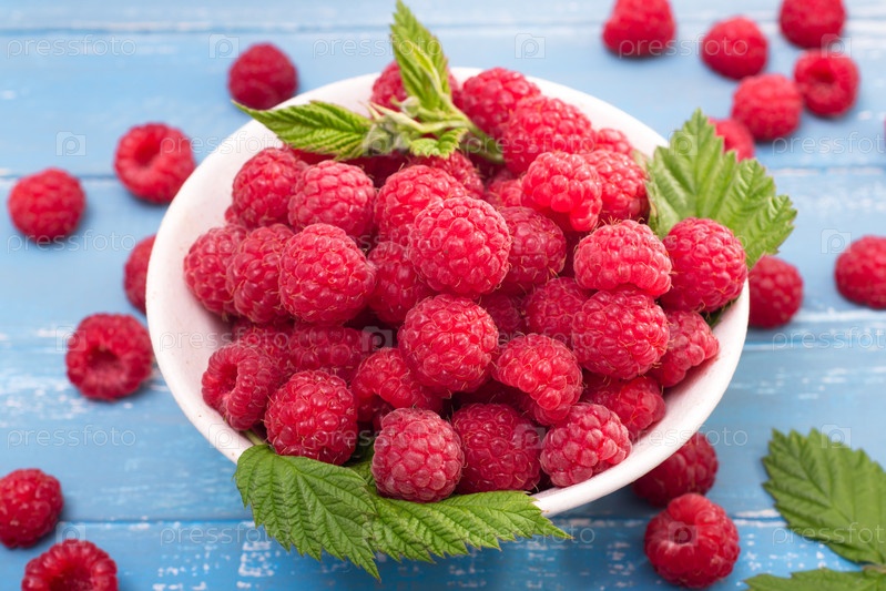 Малина на бирюзовом фоне