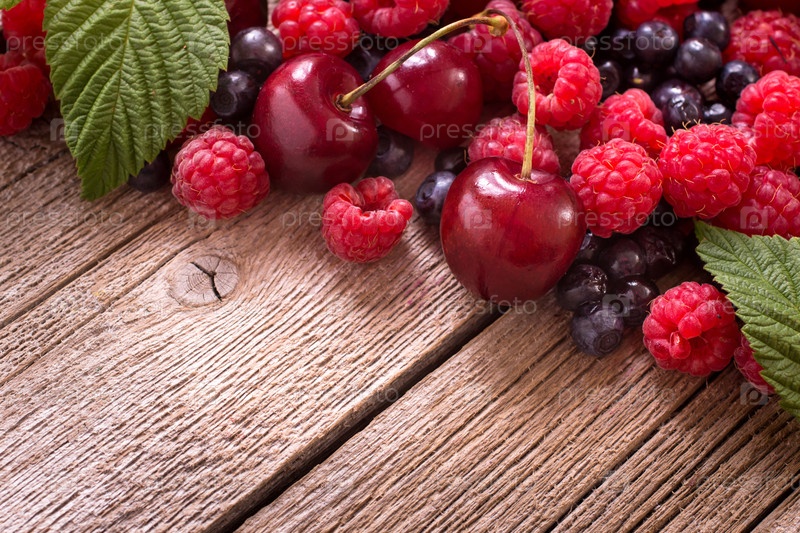 Смесь ягод на древесине