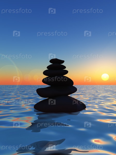 Ряд камней на воде, 3d иллюстрация