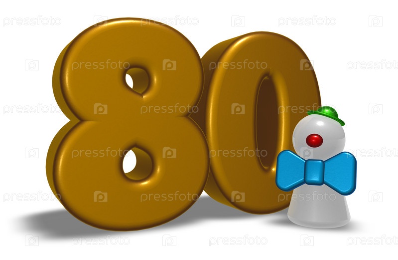 Число 80 и клоун, 3D иллюстрация