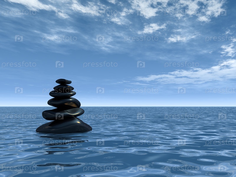 Ряд камней на воде, 3d иллюстрация