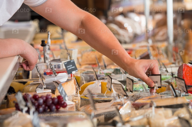 Работник супермаркета с сыром крупным планом