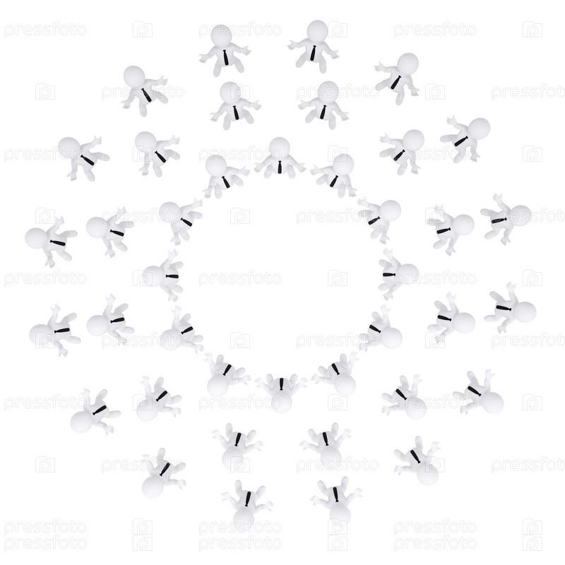 Группа белых 3D-людей с поднятыми руками
