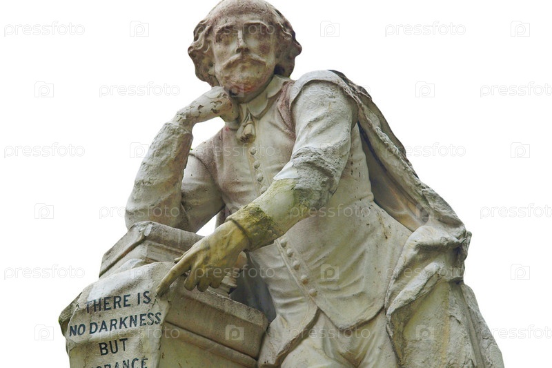 Статуя Уильяма Шекспира (1874 год) на Лестерской площади, Лондон, Великобритания, изолированная на белом фоне