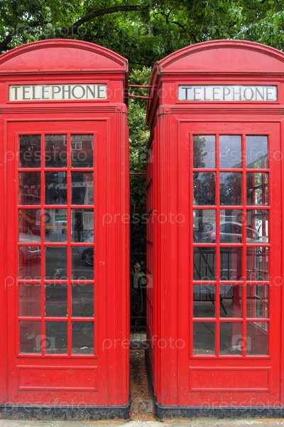 Традиционные красные телефонные будки в Лондоне, Великобритания