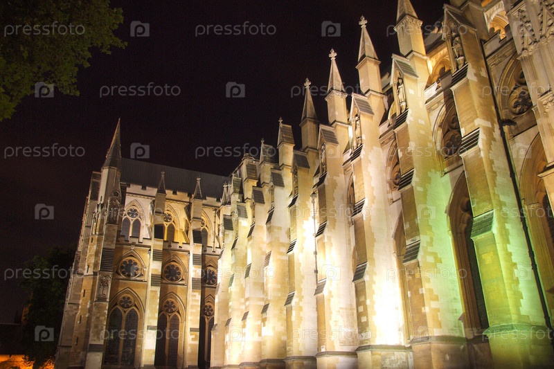 Вестминстерское аббатство в Лондоне, Великобритания. Ночной вид