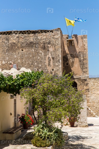 Мужской монастырь в долине Мессара на острове Крит в Греции. Мессара - является крупнейшей равниной на Крите