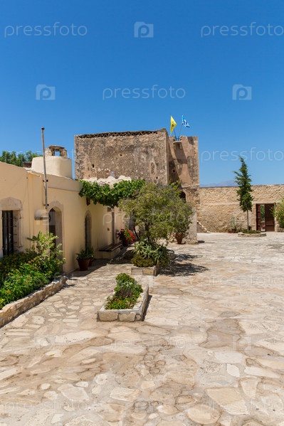 Мужской монастырь в долине Мессара на острове Крит в Греции. Мессара - крупнейшая равнина на Крите