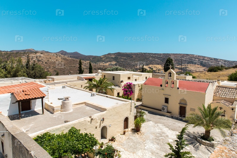 Мужской монастырь в долине Мессара на острове Крит в Греции. Мессара - крупнейшая равнина на Крите