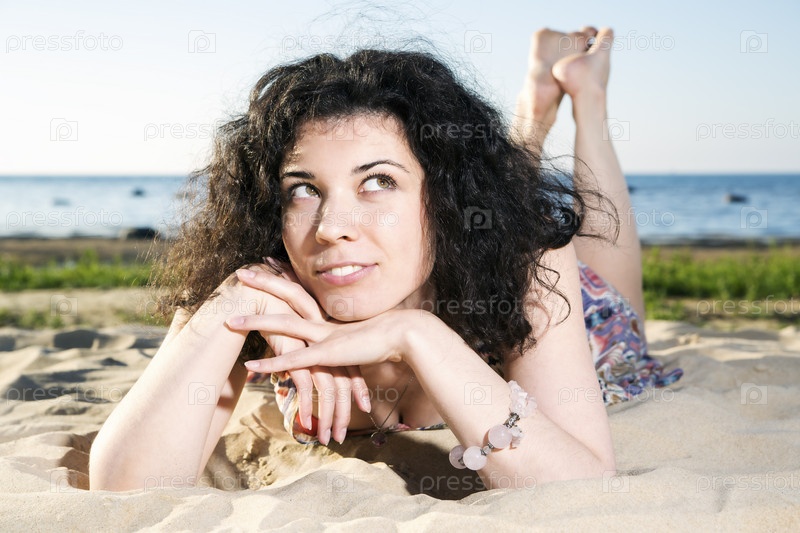 Мечтательная женщина с темными волосами