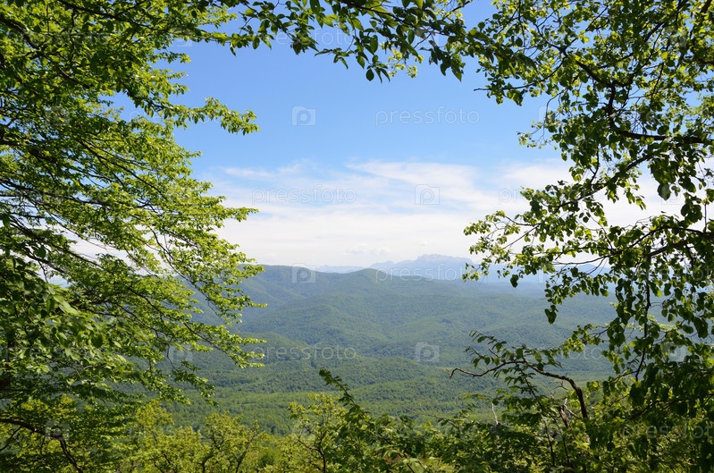 Адыгея, горный пейзаж весной. На заднем плане главный Кавказский хребет