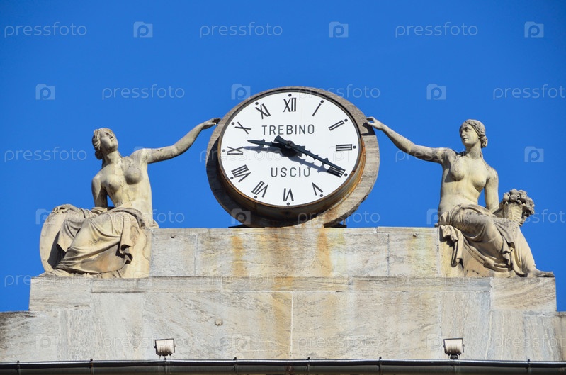 Италия, город Аоста. Часы на здании муниципалитета
