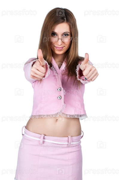 Девушка в костюме на белом фоне