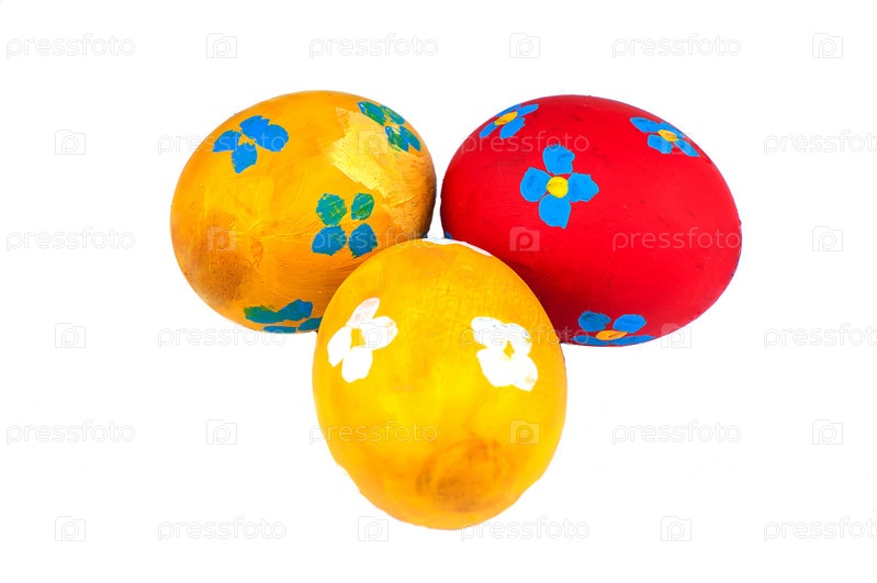 Пасхальные крашеные яйца на белом фоне