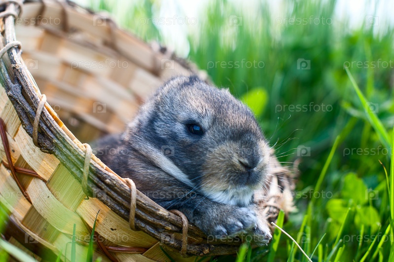 Молодой кролик сидит в корзине