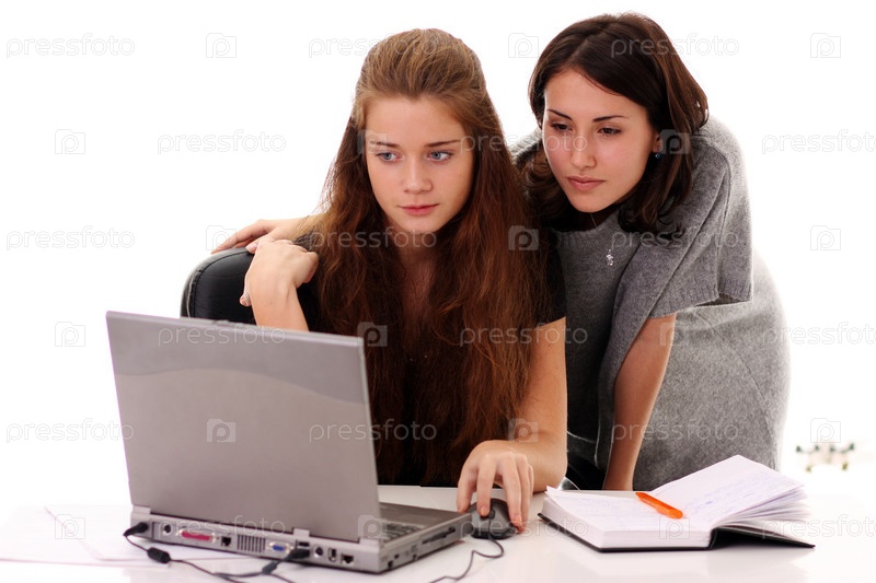 Две сотрудницы смотрят на экран ноутбука