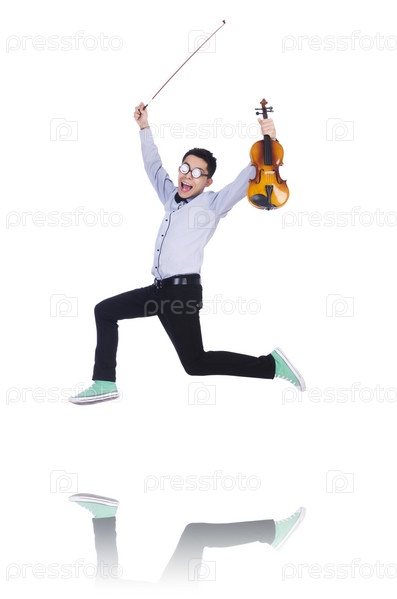 Смешной скрипач на белом фоне