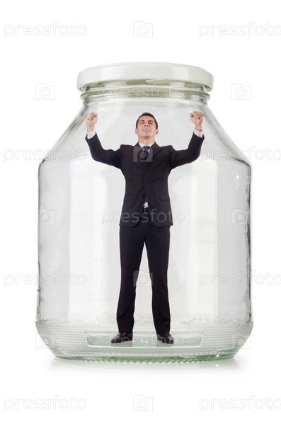 Молодой предприниматель в стеклянной банке
