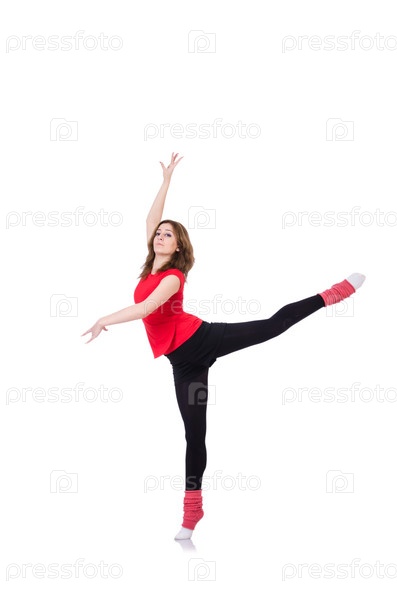 Молодая гимнастка на белом фоне