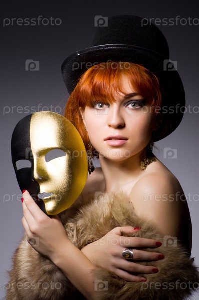 Женщина с маской в концепции лицемерия