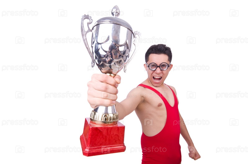 Смешной борец с кубком победителя