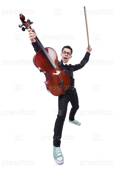 Смешной скрипач на белом фоне
