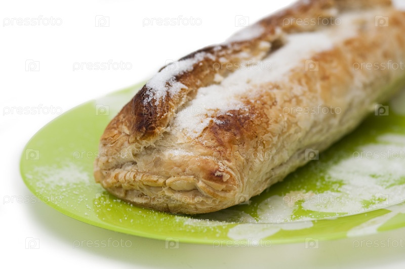 Слоеный пирожок на тарелке