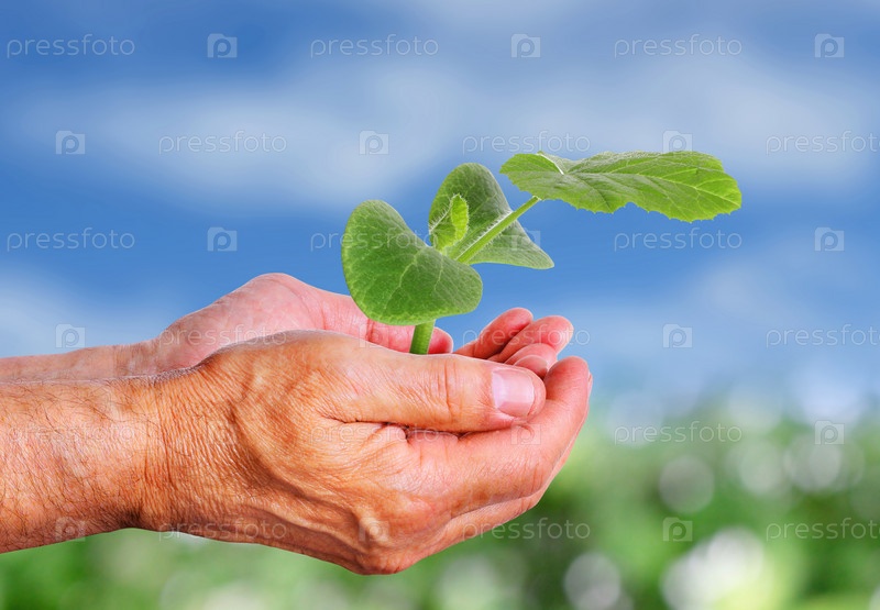 Рассада огурца в руке