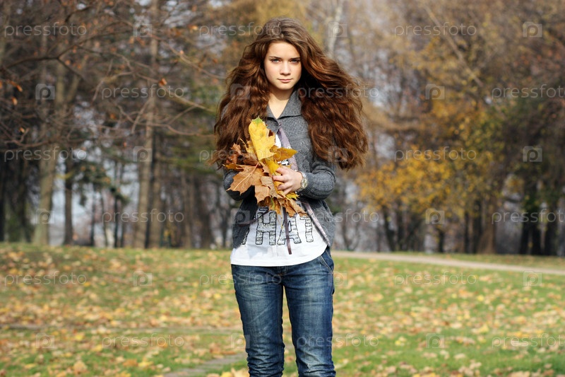 Девушка с осенними листьями
