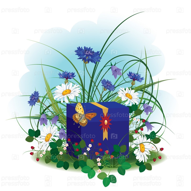 Подарочная коробка в цветах и траве