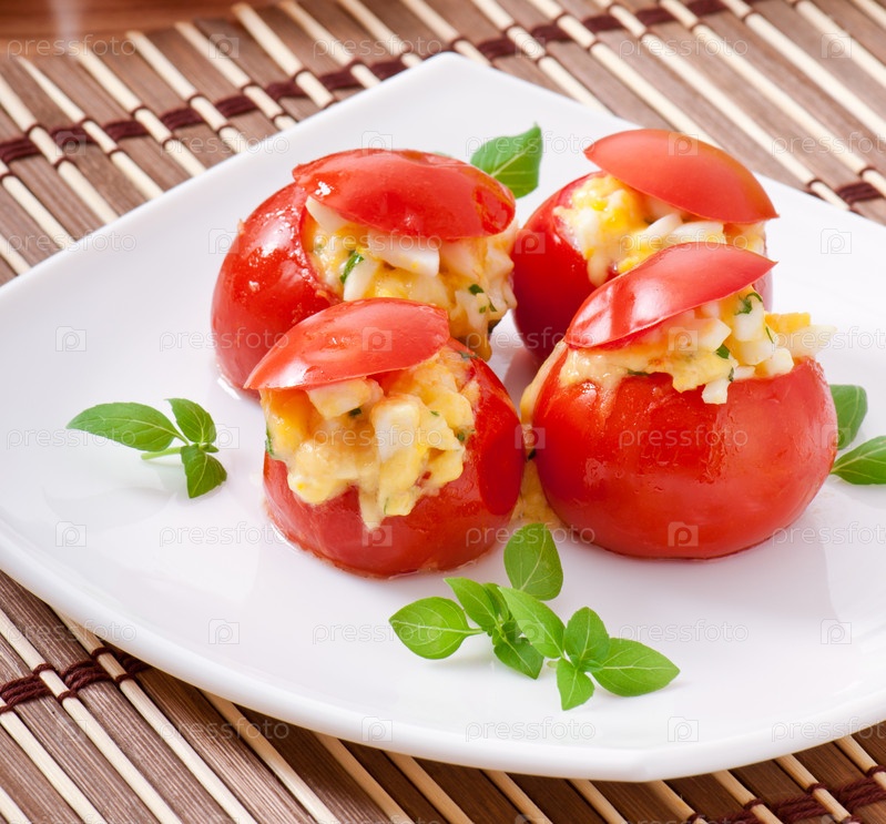 Помидоры, фаршированные сыром и яйцом со свежим базиликом