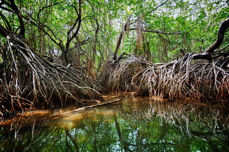 Мангровый лес в дельте тропической реки. Шри-Ланка